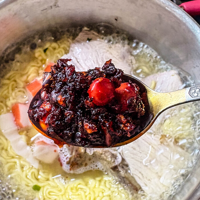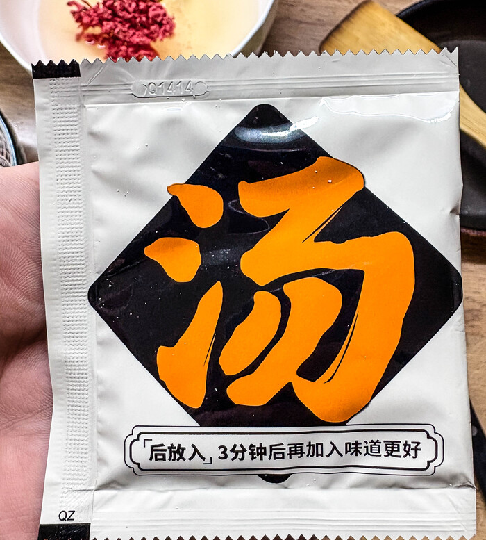 Суповая основа в виде говяжьего бульона-жира. Тоже довольно ароматно и солено.
