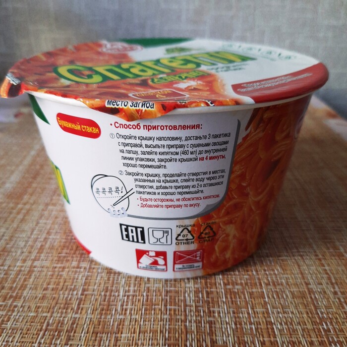 Вес с упаковкой (брутто) 80 грамм, вес без упаковки (нетто) 56 грамм, при заявленных 65, возможно это с учетом пакета специй, хотя я все-таки ожидал такой вес лапши…