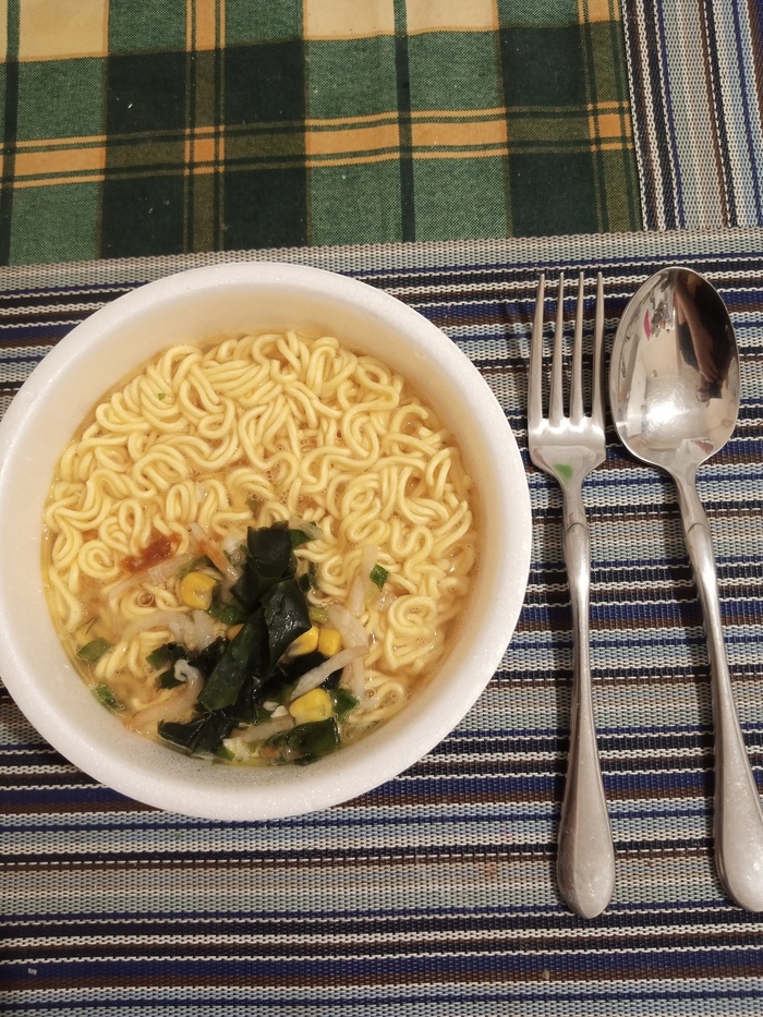 Советую приготовить лапшу по традиционному рецепту Андо: откройте крышку, разбейте в лапшу яйцо, добавьте нарезанный зеленый лук и залейте всё это дело кипятком. Плотно накройте лапшу крышкой и держите 3 минуты.