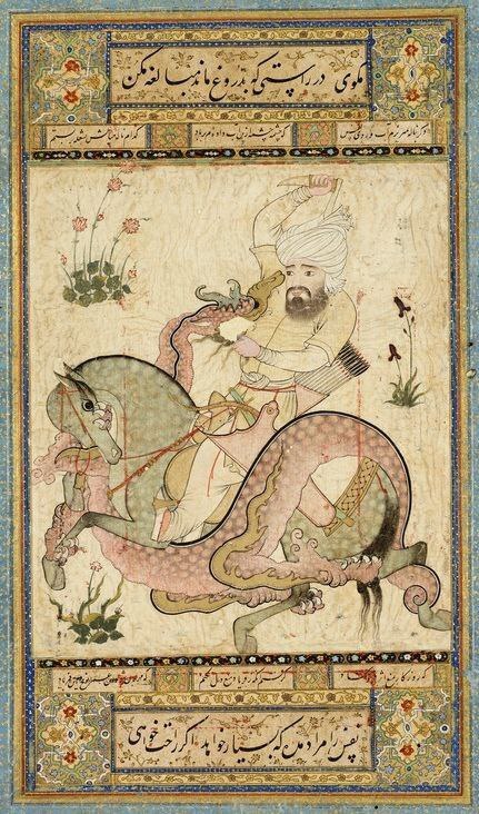 1. Рустам убивает дракона. Исфаган, Персия, кон. 17 в.