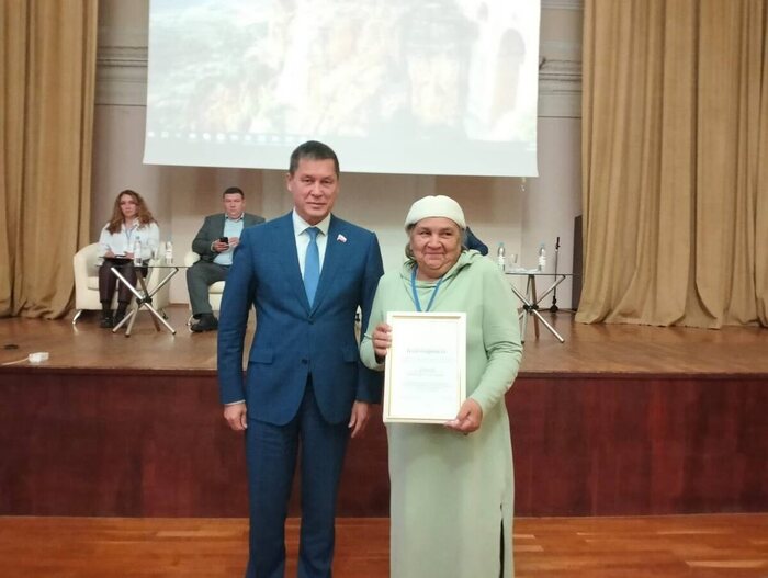 Зачитала приветствие депутата Госдумы Н.С. Валуева и четвертый спикер О.А. Ульянова.