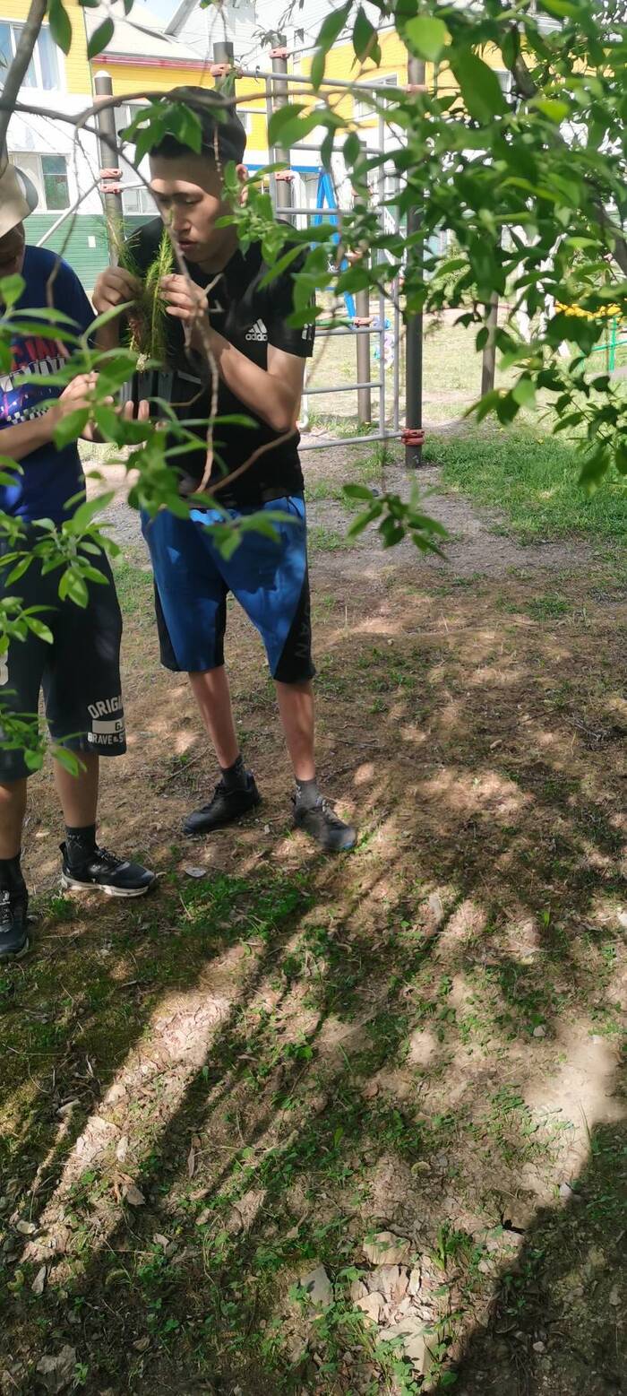 После специального обучения в зале ЛФК, (зал лечебно-физической культуры -авт.) вышли на улицу. Где с ребятами вместе выбрали свою геолокацию, на которой произвели очистку земли от мусора и отходов, в общем подготовили к посадке деревьев.