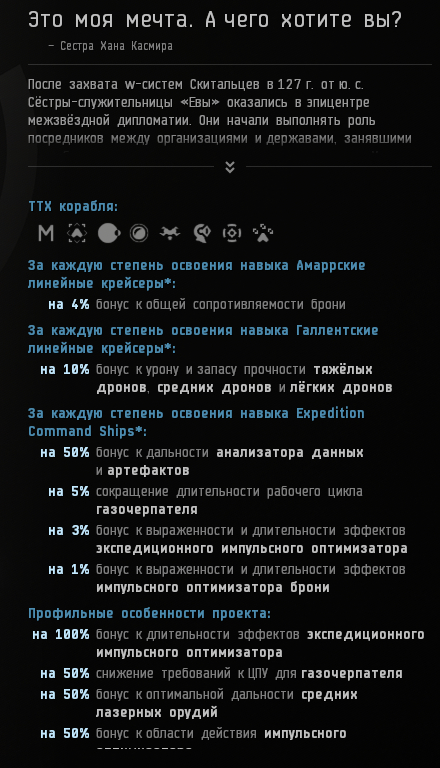 Новый корабль фракции Sisiters of EVE - класс линейный крейсер.