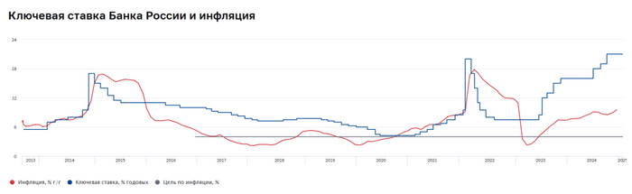 ЦБ неадекватной ставкой в 21% ударил бизнесы ниже пояса, но инфляция остается двузначной из-за заливания бюджетом расходов ВПК (тут полномочия ЦБ заканчиваются). Ставка работает как надо на коммерческий сектор, но без решения вопроса на 3 буквы это бесполезно.