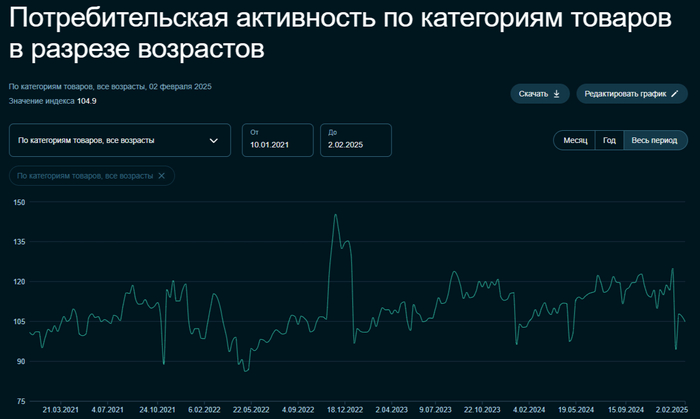 Не получается победить инфляцию 21% ставкой из-за роста тарифов на +10%, да и бюджетный стимул не думает ослабевать, что видно из растущего дефицита в январского отчете 2025 года.