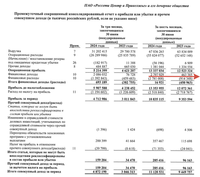 🔋 Россети ЦП опубликовала фин. результаты по МСФО за I полугодие 2024 г. Второй квартал эмитент провёл значительно лучше, поработав над операционными расходами, инвестициями, а денежная кубышка наконец-то перекрыла процентные платежи по кредитам, после данных манипуляций чистая прибыль улучшилась на значимые % по сравнению с 2023 годом (в I кв. ЧП — 6,1₽ млрд, -3,5% г/г). Давайте приступим к изучению отчёта: