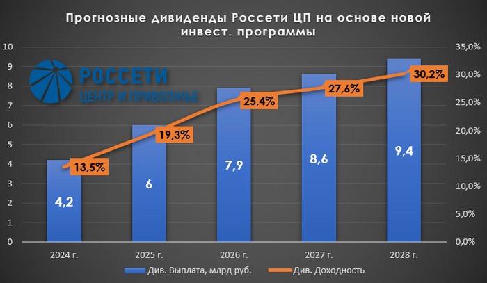 💡 Конечно, я не стал проходить мимо новой инвестиционной программы компании (прогнозирует свою деятельность на основе РСБУ с 2024 по 2028 гг.), меня там интересуют дивидендные выплаты и они шикарные (див. доходность к текущей цене): 2024 г. — 13,5%, 2025 г. — 19,3%, 2026 г. — 25,4%, 2027 г. — 27,6%, 2028 г. — 30,2%. Но опять же, это прогноз и многое может пойти не по плану.