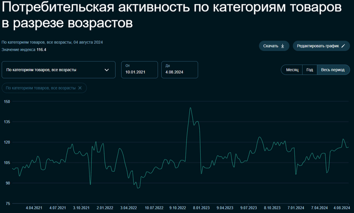 🔔 По данным Росстата, за период с 30 июля по 5 августа ИПЦ вырос на 0% (прошлые недели — 0,08%, 0,11%), с начала августа 0%, с начала года — 5,06% (годовая — 9,13%). Фиксируем, что 4 неделю подряд идёт замедление инфляции и связано это плодоовощным сезонном (это типичная история конца лета, когда инфляция в августе снижается). Главное, что Росстат пересчитал месячную инфляцию июля — 1,14% и она оказалась выше недельной (недельная — 1,07%), это подводит нас к 11-12% saar, что явно многовато, даже с учётов новых цифр регулятора.