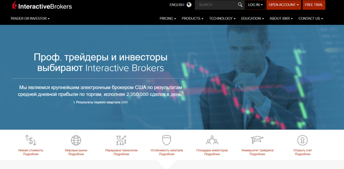 Американский брокер, который ранее активно сотрудничал с российскими клиентами до 2022 года. Он был широко использован ими для торговли на американских биржах NYSE и NASDAQ. На 2023 год существуют несколько ограничений для граждан РФ: нельзя пополнить счет рублями, покупать бумаги в евро, а также получать котировки NYSE и NASDAQ. Несмотря на то, что основатель и главный акционер Interactive Brokers Томас Петерфи в 2022 году пообещал "не отдавать россиян китайцам", обслуживаться россиянам стало менее комфортно.