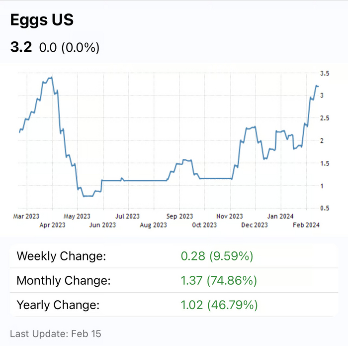 Статистика, графики, новости - 19.02.2024 - цены на яйца взлетели на 46%! Опять!