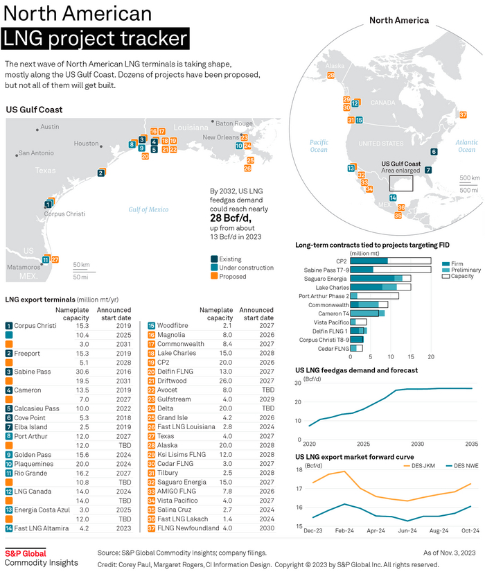 Поставки СПГ могут быть легко перенаправлены тому, кто предложит самую высокую цену, поэтому более значительный, чем ожидалось, всплеск спроса в Китае или перебои с атомной энергетикой в Японии могут переместить больше американского газа в Азию, обойдя Европу. По мере появления на рынке дополнительных мощностей в США цены будут снижаться — в конечном счёте.