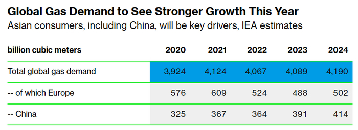 И вот опять потребление. Ожидается, что общее потребление газа по всему миру увеличится на 2,5% в 2024 году. Азия станет основным фактором ожидаемого роста мирового спроса на природный газ. Регион прибавит 4%. Один Китай уже скоро сравняется со всей Европой.