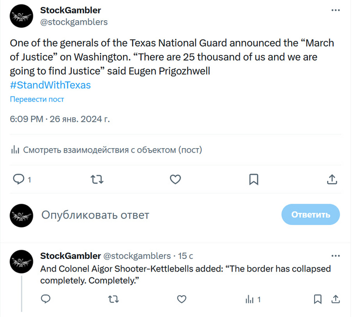 Губернатор Грег Эбботт 24 января выступил с заявлением о конституционном праве Техаса на самооборону, поскольку президент Джо Байден продолжает нападать на Техас (continues to attack Texas) и отказывается выполнять свои обязанности по охране границы.