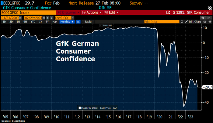 Не успели мы с Шольцем закончить смеяться над немецким бизнес-климатом, как подвезли потребительских настроений от GfK - крупнейшего в Германии научно-исследовательского института.