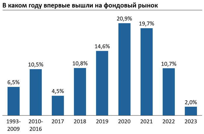 Больше половины людей (53%) начали инвестировать в ковид или позже (2020-2023). Но есть и старожилы: 0,7% вышли на фондовый рынок еще в 90-е, и еще почти 6% начали свой инвестиционный путь в нулевые годы.