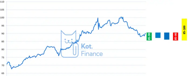 Важно, что никто из аналитиков не закладывает курс выше 100. Для нас (котов) это выглядит странным. Ориентироваться только на математику (сальдо платежного баланса и интересы Минфина и ЦБ) и совсем не закладывать форс-мажор, риск блокировки активов, новые ссанкции (две "с" - не опечатка).