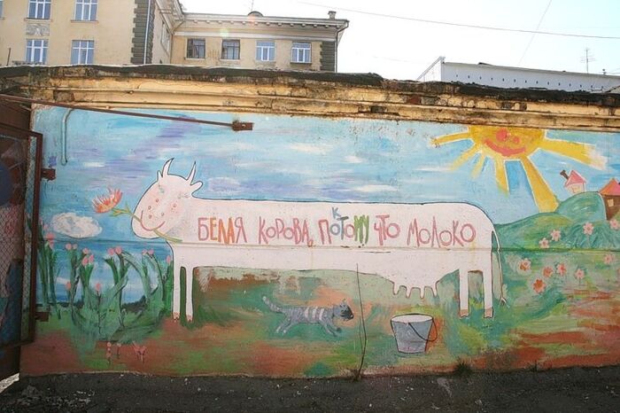 А чтобы читать вам было поинтереснее, я украсил текст работами по мотивам творчества главного стрит-артиста моего родного Екатеринбурга 90-х годов, инженера-энергетика и творца в жанре наивного искусства Старика Букашкина (заодно и окультуримся тут все вместе коллективно!).