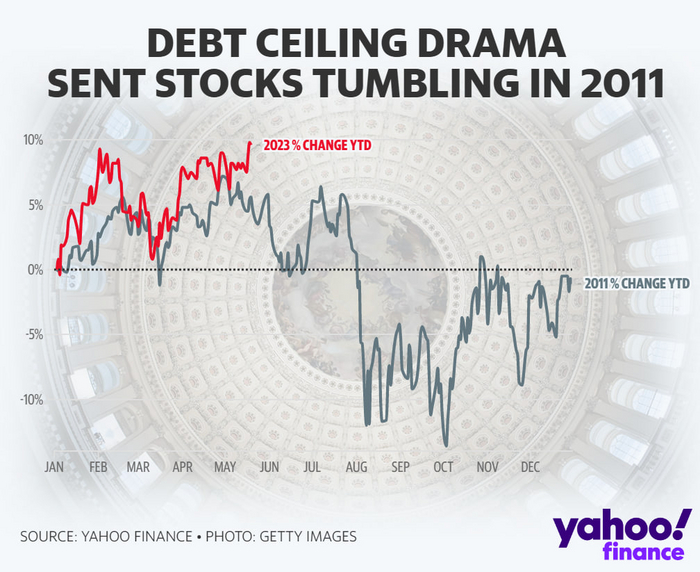 Яхуу немножко намекает, сравнивая графики годового движения акций в 2011 и в 2023. Тогда, видимо, тоже была "потолковая" драма.