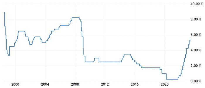 Таким образом, Банк вышел на уровень 2008 года. Но, говорят, теперь сделано достаточно, чтобы обуздать инфляцию. Прогнозируют, что подъемов ставки больше не будет, а сокращения начнутся с 3 квартала 2024.