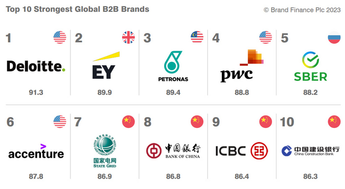 Международная консалтинговая компания Brand Finance в своем отчете Global Most Valuable B2B Brands Index 2023 поставила наш с вами Сбер на 5-ю строчку в рейтинге сильнейших B2B брендов на планете.