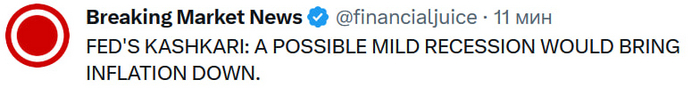 Новые откровения от Ниила Кашкари, президента Федерального резервного банка Миннеаполиса: "возможная небольшая рецессия снизит инфляцию"