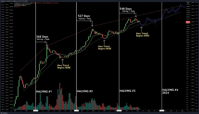 График цены BTC с динамикой и даты халвингов
