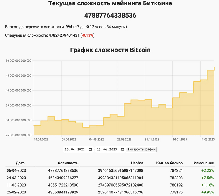 Важно понимать, что эмиссия монет предсказуема и прозрачна, а по состоянию на апрель 2023 уже добыто 19 345 287 монет из запланированных 21 млн или 92% от общего предложения. То, сколько монет будет добыто за единицу времени, регулируется халвингами и коррекцией сложности сети.