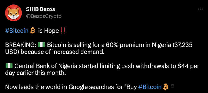 Весьма интересное событие произошло в Нигерии в январе 2023 — стоимость биткоина на местной бирже подскочила до $39 тыс., в это время ценники на глобальных рынках колебались в районе $20 тыс.