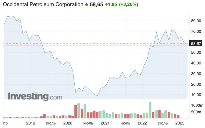 По итогам 2022 года акции Occidental Petroleum показали лучшую динамику среди всех компаний в индексе S&P500 - +121% за год.
