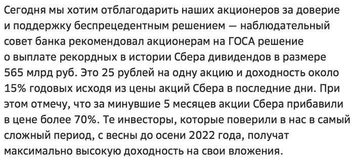 Набсовет Сбера рекомендовал дивиденд в размере 25 рублей на акцию. Дата закрытия реестра акционеров Сбера для выплаты дивидендов - 11 мая (нужно успеть купить акции до этой даты). Дивидендная доходность Сбербанка при текущих ценах (188 рублей) - более 13%.