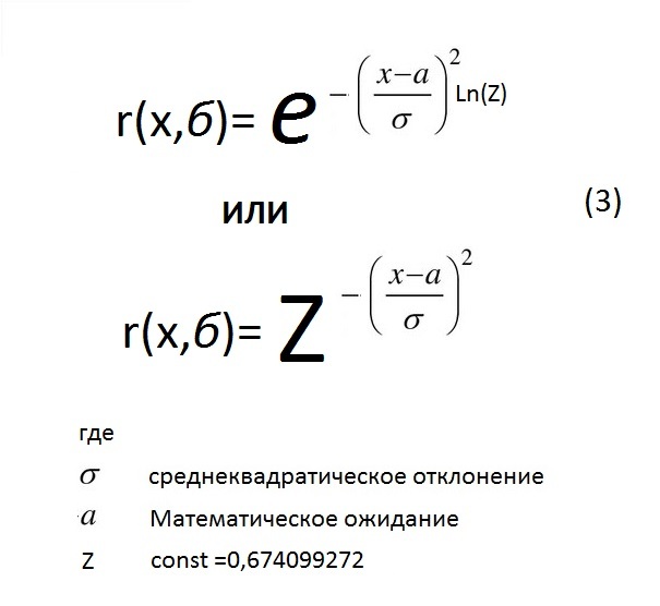Поскольку б (среднеквадратическое отклонение) для БР переменная, то логично было бы представить ее в виде функции, либо добавить к текущему значению б «функцию размытия» r(x,б). Тогда для биржевого распределения будем иметь формулу следующего вида: