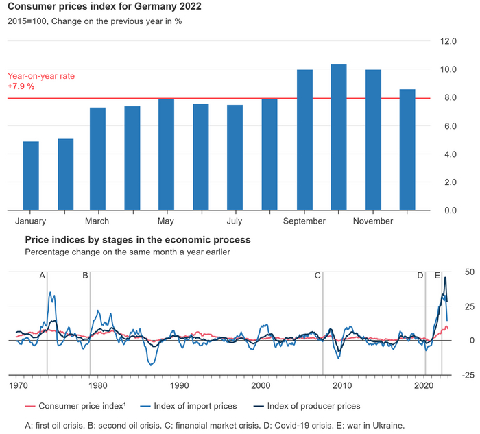По результатам декабря 2022 года рост цен в Евросоюзе составил 10,4%, в еврозоне - 9,2%