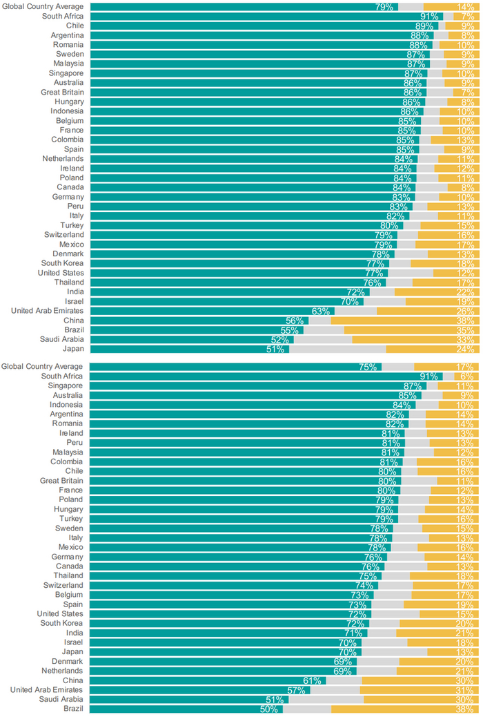 Нижний график: "Цены в моей стране буду выше в 2023, чем они были в 2022"