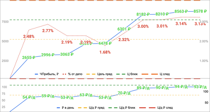 Если разложить ЧП по дням, то со своей работы на бирже я делал по 93₽ в день чистыми 🙂