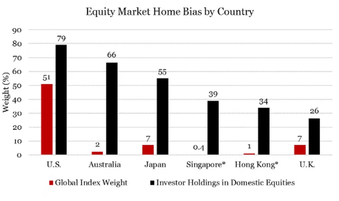 13). "Существует ряд хорошо документированных исследований, доказывающих, что люди предпочитают вкладывать деньги в компании той страны, где они проживают, игнорируя остальные 95 с лишним процентов планеты. Это нерационально, но если задуматься о том, что инвестировать – это значит, по сути, отдавать деньги незнакомым людям, то лучше уж поступать благоразумно и поддерживать своими вложениями пусть и незнакомых людей, но хотя бы у себя дома"