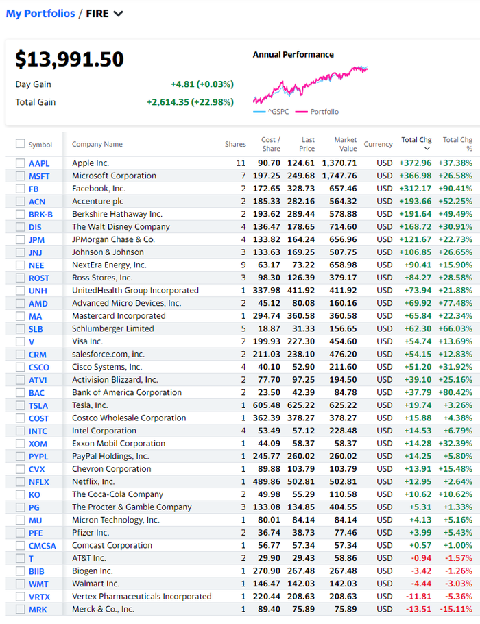 Существуют как ETF, отслеживающие индексы, так и активно управляемые ETF. Остановимся на тех ETF, которые отслеживают индекс, поскольку они имеют низкие комиссии за управление и следуют за рынком. Преимущество ETF заключается в том, что вам не нужно самостоятельно следить за весами компаний в портфеле и производить ребалансировку, ведь всё это делает инвестиционная компания, выпустившая этот ETF.