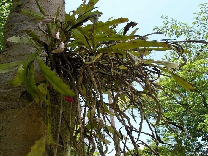 Шлюмбергера родом не из пустыни, как большинство её колючих родственников, а из влажных тропических лесов Бразилии. Там она не ползает по песку, а живёт на деревьях — эпифит. Вместо того чтобы копать землю, она свешивается с веток, впитывая влагу из воздуха, и ждёт сезонных ливней. Условия явно не для слабонервных, но зато как красиво!