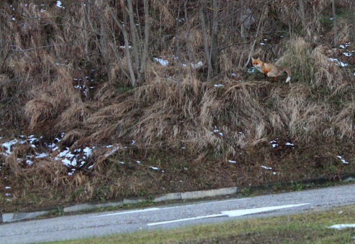 Вот так сидишь, пьёшь чаёк на разгрузке у гипермаркета, а она бежит куда-то по своим лисьим делам. Ранняя весна, Пятигорск.