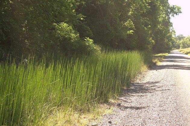 Во влажных лесах можно увидеть крупные колонии хвоща зимующего. Это очень агрессивное растение, обладающее разветвлёнными корневищами и корнями, поэтому садовникам, которые обнаружили его на своем участке, бывает весьма сложно его выкопать. А если срезать хвощ и оставить в почве хотя бы небольшую часть его корневища, то очень скоро появятся новые ростки.