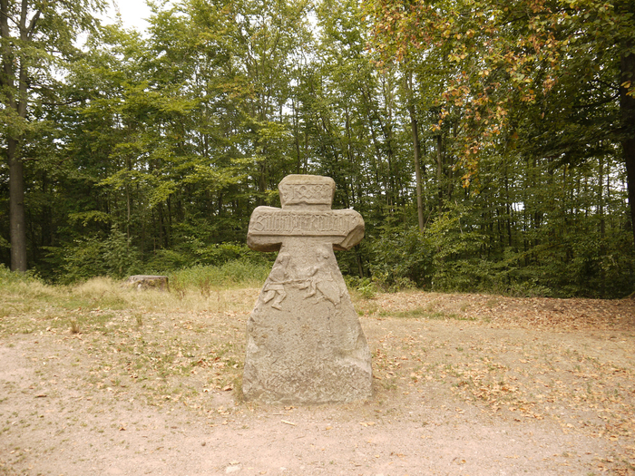 Если же от Elfengrotte подняться наверх - то можно увидеть интересный каменный крест (N 50° 56.735' E 10° 17.486') , на котором изображена сцена охоты на кабана.