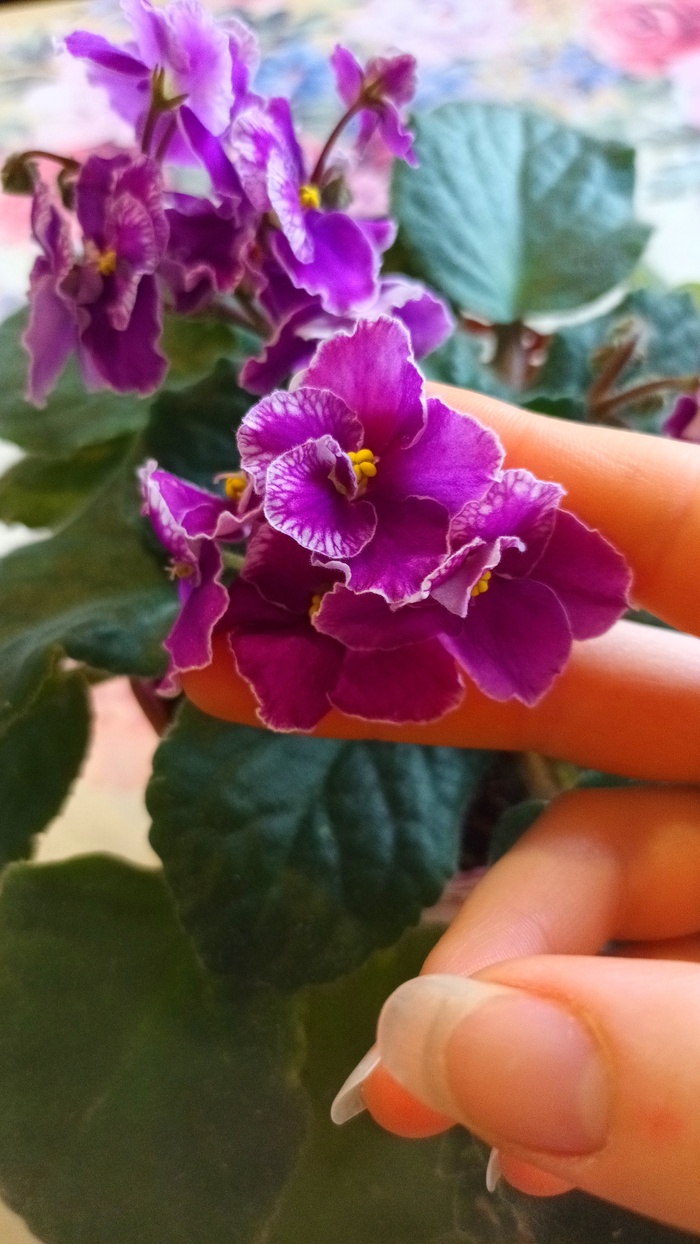 У этой фиалочки белые цветочки с розовыми всполохами и чудесное фиолетовое фентези! И, конечно, удивительная пестролистная розетка!