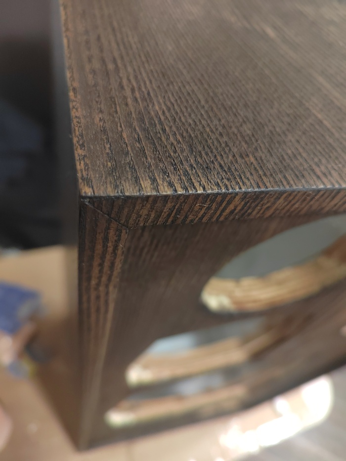 С учётом первого в жизни опыта работы со шпоном углы получились не плохо, ничего не отклеилось в процессе работы.