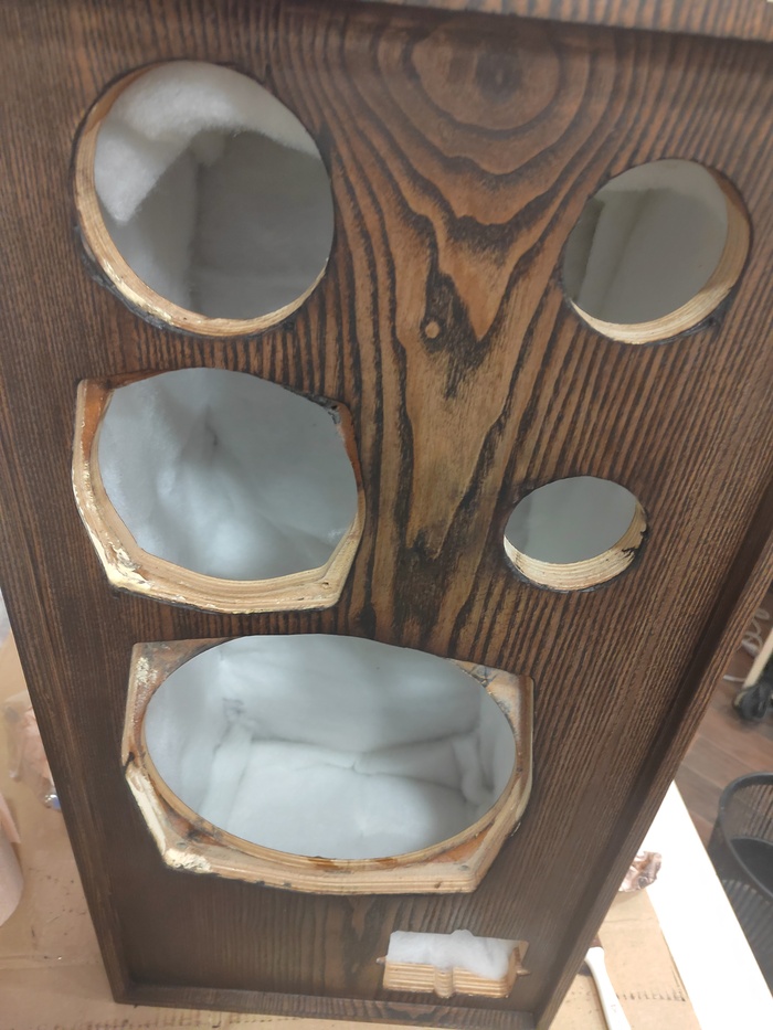 Изнутри приклеиваем синтепон, мешки с ватой, которые были там изначально, ушли в мусор ввиду крайней ветхости и плохого состояния.