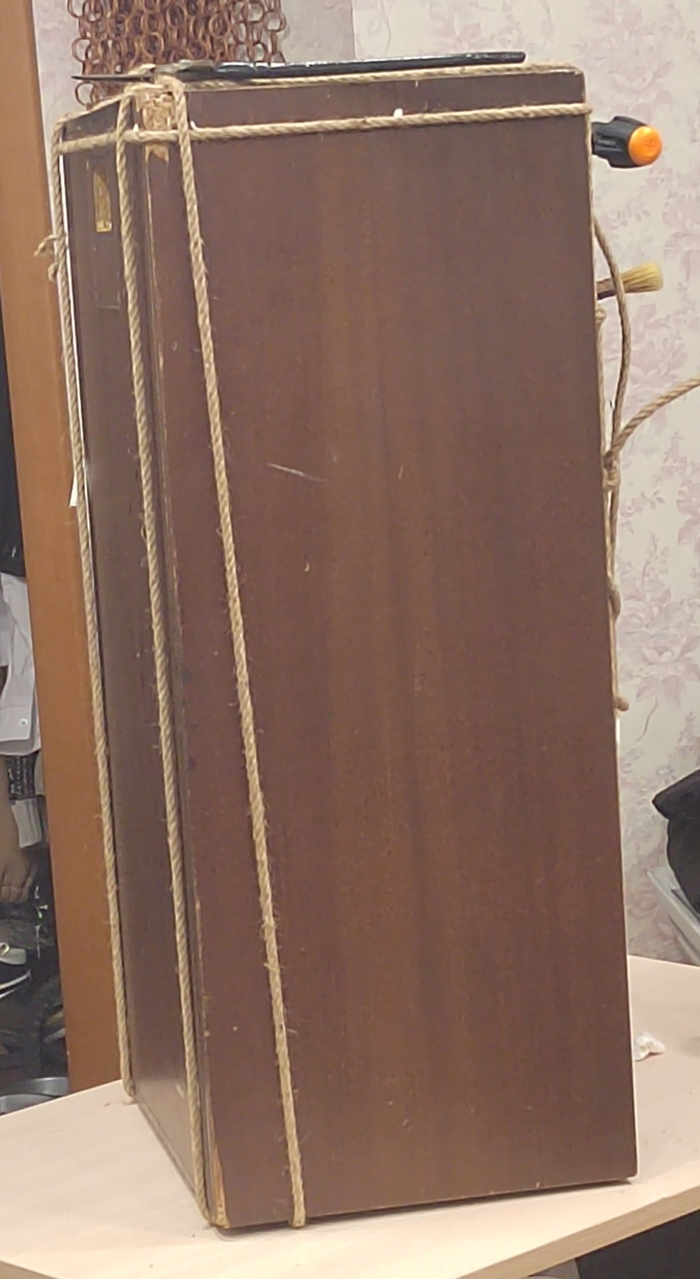 Струбцин такого размера у меня нет, покупать их очень дорого, потому стяжку производил с помощью верёвки, натягивая её скручиванием.