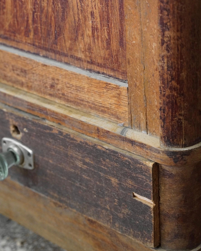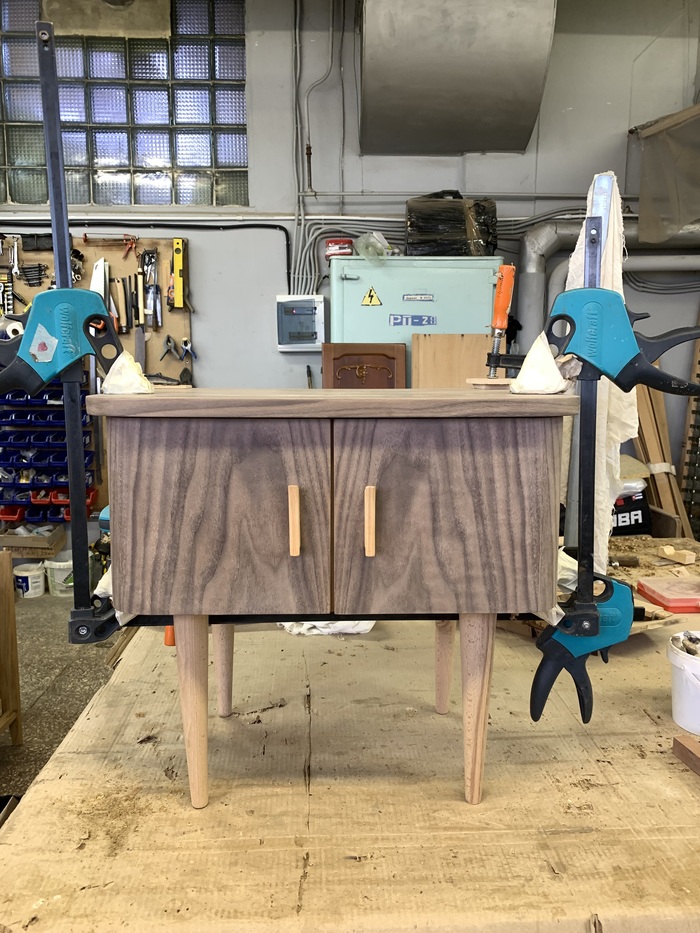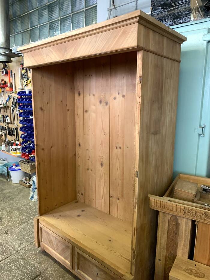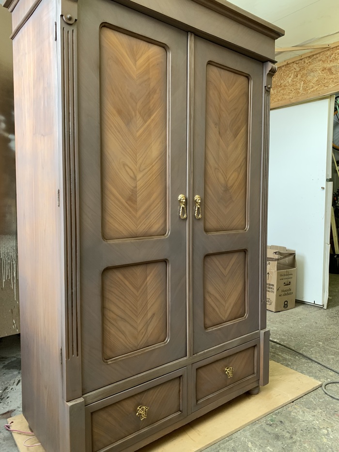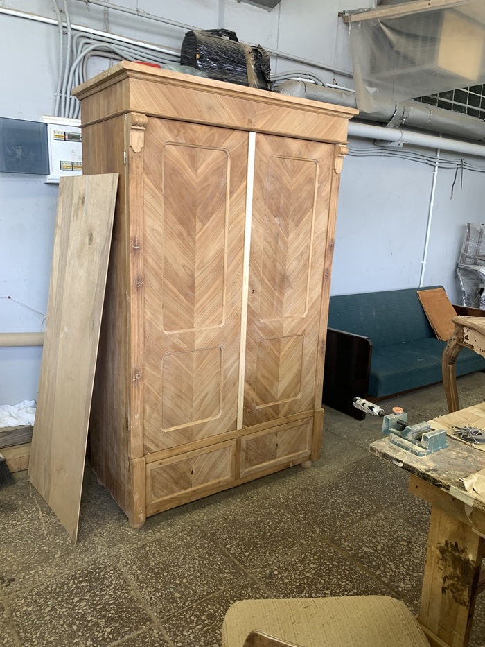 Первым делом разобрал полностью и начал обдирать лак (что скорее всего зря, т. к. всё равно решил перекрашивать). Это адская работа, шлифкой пробовал -забивается сразу, потом загуглил, лак ножом отдирают, взял хозяйственный нож, всё равно работа капец.