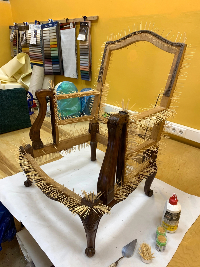 Пошерстив авито, долго искал нужное, а именно два одинаковых стула почти задарма. Состояние почти не интересовало, т. к. под реставрацию. Либо по три-пять тысяч, либо стоят в ряд шесть штук, а двух одинаковых нет, или обвязка ножек разная, или количество планок между сидением и спинкой, или форма сидения. Короче, кое как нашёл, мужик по телефону говорит- приезжай, выбирай. Приехал, у него в гараже их штук пятнадцать (это прям бизнес,оказывается) и давай ковыряться, они реально всё разные, кое-как нашёл два, один из них собакой погрызанный, но пофиг, 500₽ за оба меня устраивало.