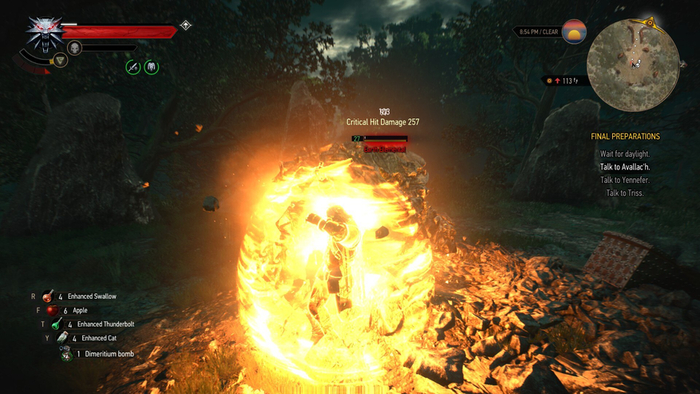 Вслед за графикой в глаза бросается новая боевая система. Не поймите меня неправильно: для типичной игры в открытом мире она неплоха. Однако в ней слишком много бессмысленной мешанины на поле боя и присутствуют откровенные проблемы с балансом. Возможно, разработчикам стоило остановиться на боёвке из «Ведьмака 2: Убийцы Королей», где игрок буквально чувствовал, как меч входит в тело утопца, а не придумывать заново велосипед в угоду новой аудитории. Поскольку даже в первой части смена боевых стилей доставляла куда больше удовольствия, нежели постоянные отскоки и наложение знака Квен. И не надо мне писать, что никто не заставляет игрока постоянно спамить один лишь магический щит: люди всегда идут по пути наименьшего сопротивления. И если разработчики не учли данного факта, то они плохо справились со своей работой.