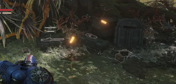Зачем же разработчики разместили подобные лут боксы на каждом шагу? Потому что они нужны, так как не зная с чем придётся столкнуться вы можете взять совсем не тот вид оружия, который будет эффективен и просто не сможете пройти игру дальше если у вас этого лут бокса не будет. Кроме того постоянная необходимость пополнять крайне ограниченные боеприпасы так же требует этих лут боксов. Почему же боеприпасы постоянно заканчиваются? Потому что оружие не дамажит, так словно у тебя не болтер в руках(а болтер это реактивный автоматический гранатомёт), а простой автоган какого-то забулдыги с аграрной планеты. Разницы между стволами нет почти никакой, а та что есть скорее косметическая, чем реальная. Кроме того там под видом болтеров не только болтеры как таковые, но легко узнаваемые за скинами болтеров пистолеты пулемёты и штурмовые винтовки. В игре у нас отсутствует практически всё, что является базовым для мира вархаммер 40к.