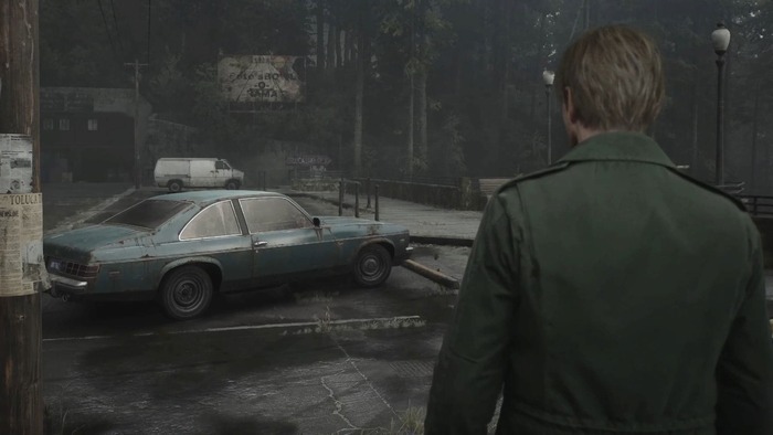 Уставший и побитый жизнью Джеймс Сандерленд всматривается в горизонт, обтянутый то ли сонной пеленой, то ли прозрачным латексом. Эта дымка веками скрывает массивные и выцветшие деревья. Но в городке Сайлент Хилл многое — не то, чем кажется, поэтому пейзаж, пронизанный романтикой и безнадежностью, напоминает опрятную открытку с соболезнованиями.