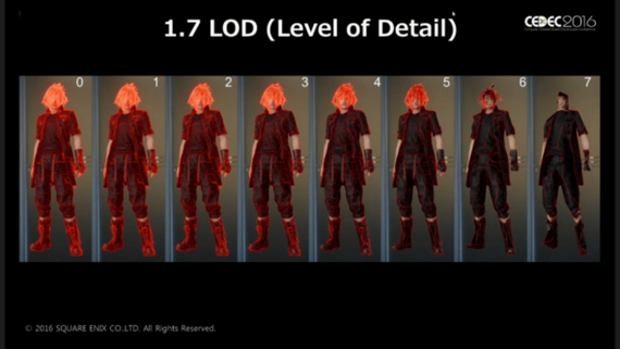 Если мы посмотрим с вами на картинку выше, то видим, как меняется геометрия персонажа. Т.е. если игрок вблизи персонажа - то мы видим LOD 0. И чем дальше, тем LOD идёт к 7, т.е. геометрия персонажа сильно портится, но игрок этого не увидит, а увидит лишь знакомый силуэт персонажа, но с узнаваемыми чертами.